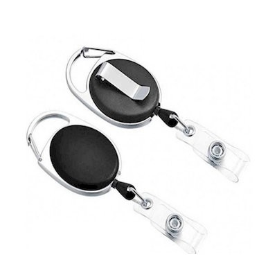 This Handy Heavy Duty Item Holds Tight to Most Id Badges & Other Cards Thanks to a Clear Transparent Flex Button Snap Appendage. Using the Removable Chromed Metal Carabiner Hook or Back Clip Reel to Easily Clip on to Belts, Pockets, Purse Straps, Backpacks or Anywhere You Like. Customize This Badge Reel with Your Company Name & Logo to Increase Brand Exposure! 2.12 Inch L x 1.38 Inch W x 0.47 Inch H