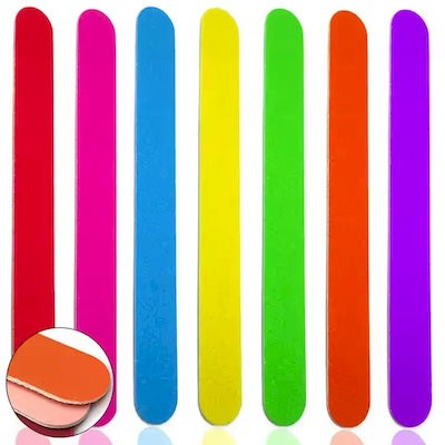 Plastic Stick Covered with Colour Sand Paper on Both Sides. File Your Nails with a Lighter Touch Without Damaging the Nail, They Are Also Perfect to Remove Nail Gel in Your Extended or Fake Nails.