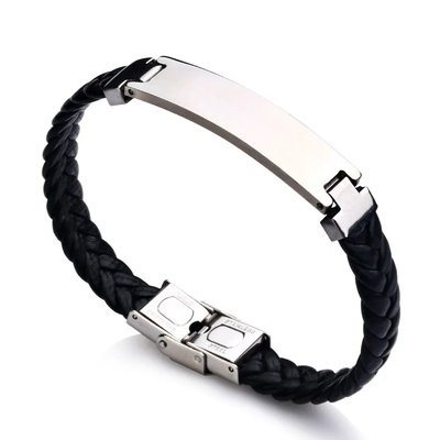 STAINLESS STEEL METAL LEATHER WOVEN BRACELET